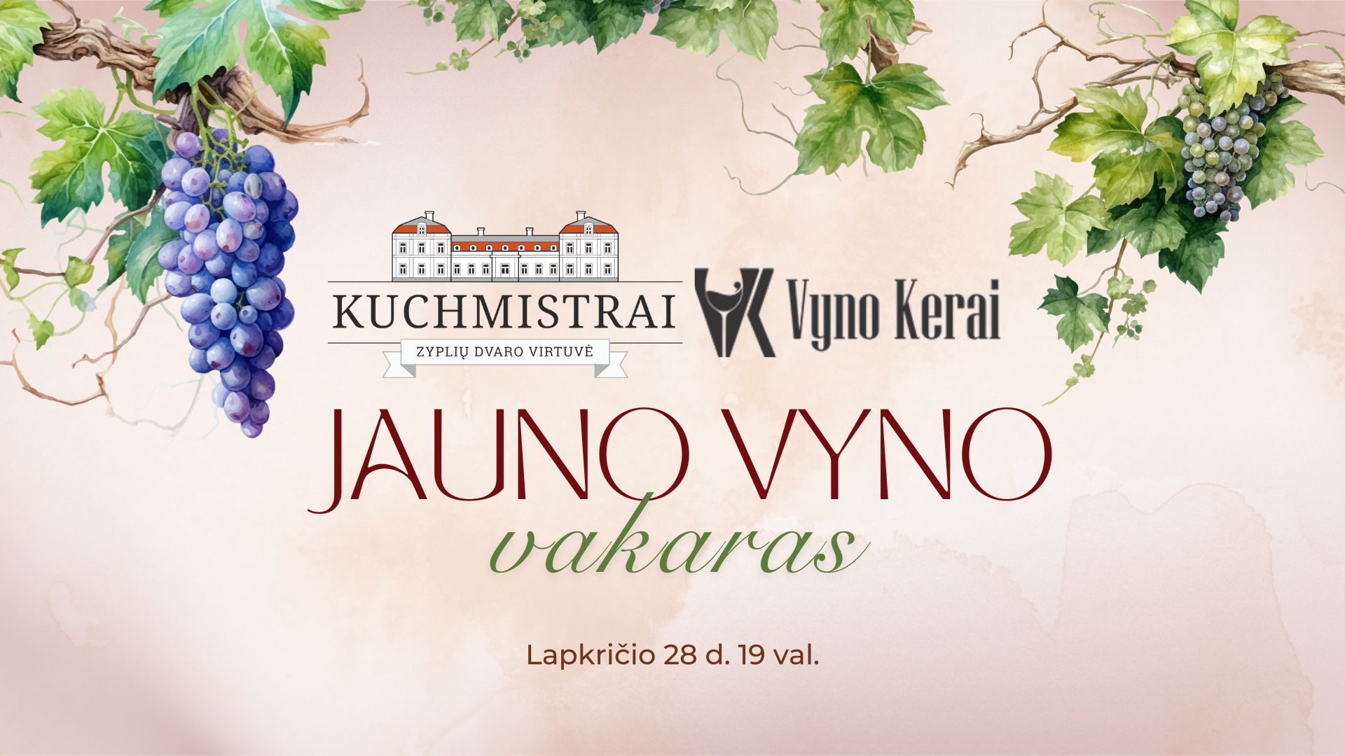 Zyplių dvaro virtuvės restoranas „Kuchmistrai“ ir lietuviško vyno tradicijų puoselėtojai „Vyno kerai“ kviečia į vakarą, kurio pagrindiniai veikėjai: jaunas lietuviškos žemės uogų vynas ir dvariška virtuvė.