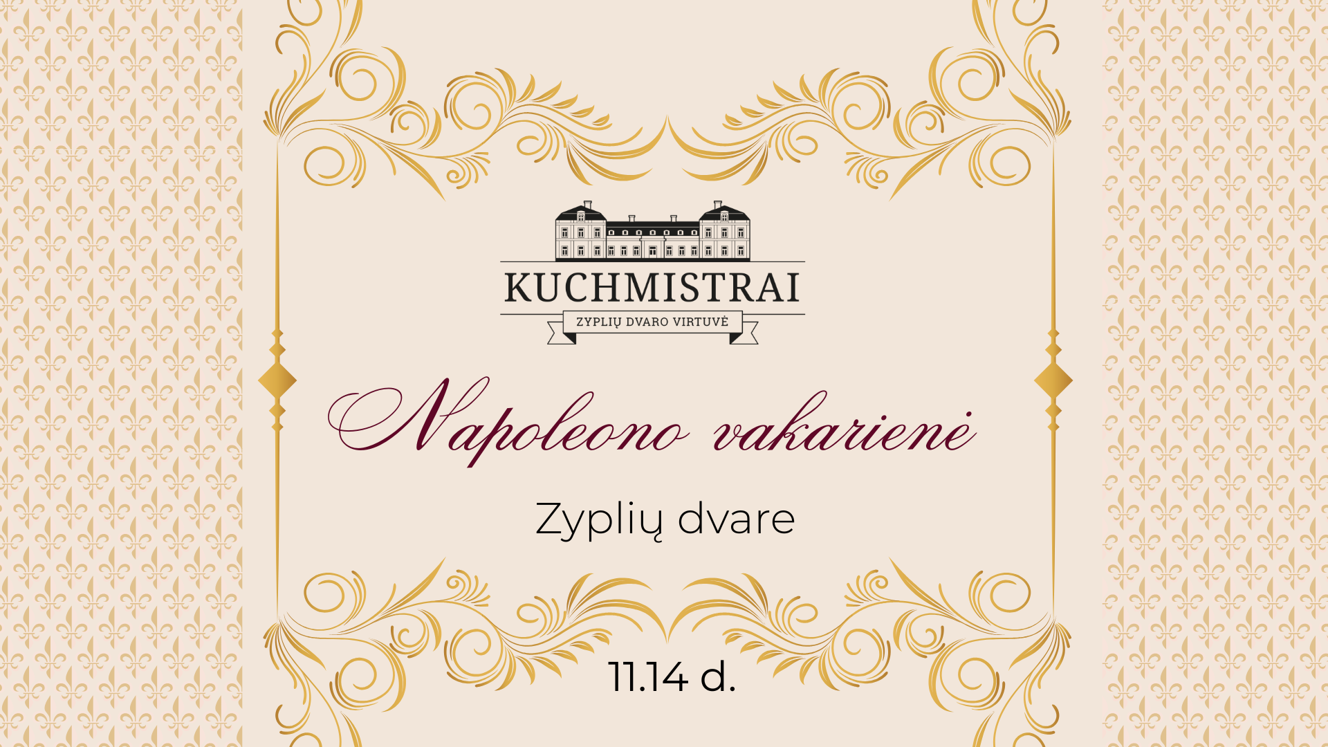 Lapkričio 14 d. 19 val. restoranas „Kuchmistrai“ kviečia į ypatingą šios istorinės asmenybės, Napoleono Bonaparto, įkvėptą degustacinę vakarienę, kurioje atgims XIX a. pradžios Europos dvarų gastronominė tradicija.